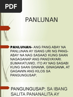 Pamaraan pamanahon and panlunan. Ang pang-abay o ang adverb sa Ingles ay ang mga salitang nagbibigay turing o naglalarawan sa pandiwa pang-uri o kapwa.