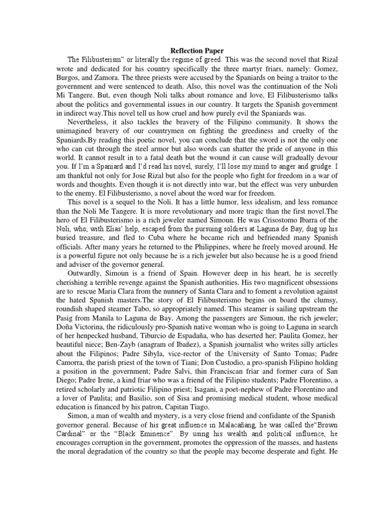 Reflection About El Filibusterismo Docx Reflection About El Filibusterismo As A Student And Teen Ager This Novel Brings Lessons And Realizations In Course Hero