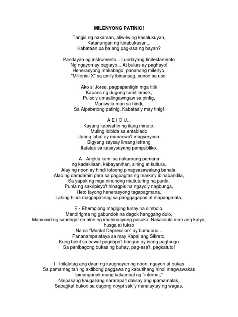 Spoken Poetry Filipino Milenyong Patinig Pdf