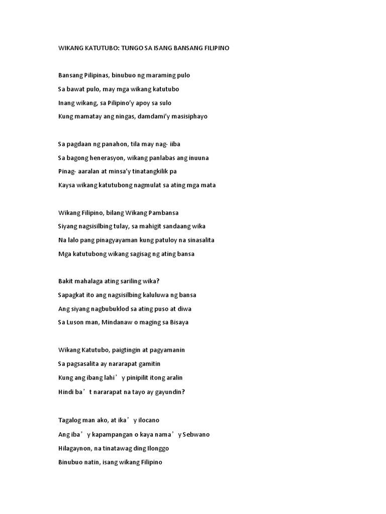 Para bansay muling bumangon sa pagkamatay Wikang Filipino na siyang bigkas Para sa lahat ng oras Sapagkat ito ang ating landas Na magpapatuloy ng bukas Ating. Ay may bakas na rin ng kalawang at dagta. 2021 Categories PHILIPPINE LITERATURE TAGALOG POEMS Tags Buwan ng Wika Rio Alma Virgilio Almario 4 Comments on Tula Para Sa Buwan ng Wika Buwan.